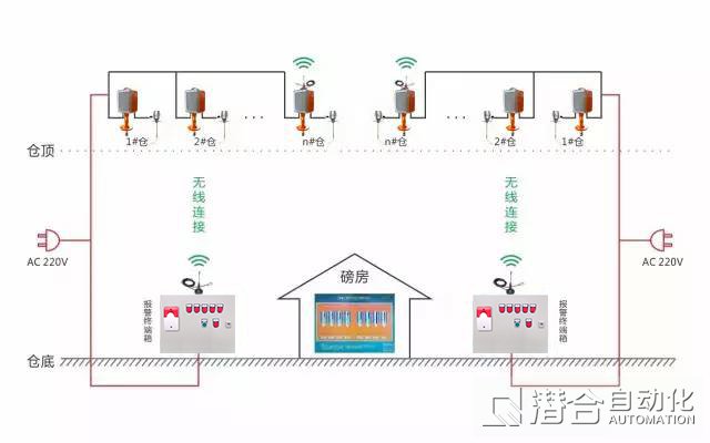 近年來(lái),我國(guó)混凝土攪拌站得到較快的發(fā)展,但其計(jì)量精度低、控制可靠性差已嚴(yán)重影響了混凝土生產(chǎn)的質(zhì)量和效率,當(dāng)前計(jì)量系統(tǒng)中誤差對(duì)混凝土質(zhì)量和強(qiáng)度影響很大。系統(tǒng)通過(guò)安裝于倉(cāng)頂?shù)闹劐N式料位計(jì),可精確探測(cè)筒倉(cāng)內(nèi)料面位置,獲取上空值,并通過(guò)料倉(cāng)有效高度、錐體高度、堆積密度、堆積密度算法獲取倉(cāng)內(nèi)物料存量,對(duì)倉(cāng)內(nèi)存量有預(yù)期,配合報(bào)警系統(tǒng),可防止“冒頂”發(fā)生,同時(shí)也可以作為無(wú)人值守磅房分倉(cāng)的重要參考。