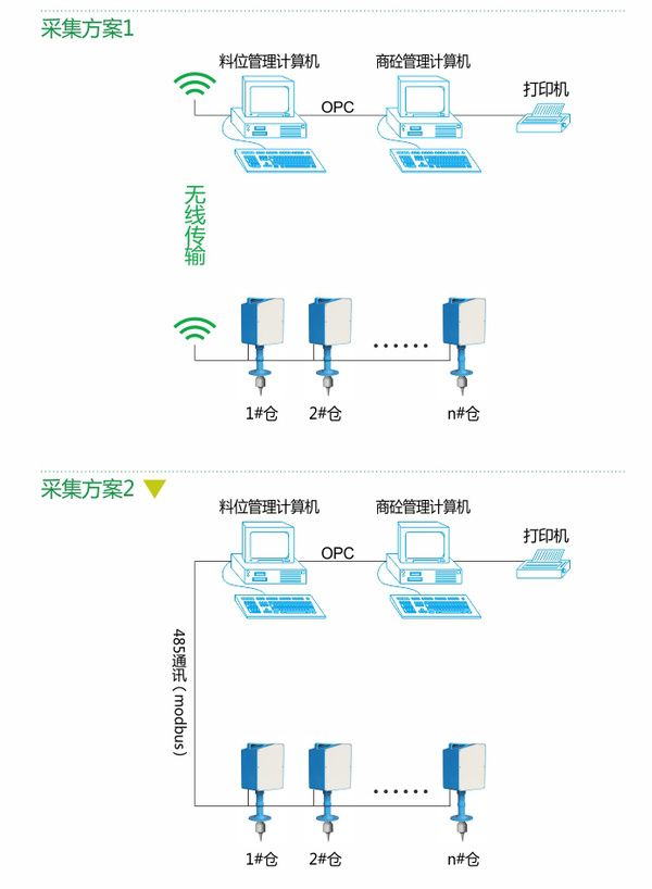 系統(tǒng)由重錘式料位計(jì)、阻旋料位開(kāi)關(guān)、倉(cāng)底報(bào)警終端、無(wú)限數(shù)據(jù)傳輸單元、磅房顯示畫(huà)面等組成、解決罐車(chē)上料(氣力輸送)在倉(cāng)臨近滿(mǎn)倉(cāng)時(shí)的料位實(shí)時(shí)報(bào)警,彌補(bǔ)重錘式料位計(jì)在上料時(shí)不允許探測(cè)的缺陷,重錘式料位計(jì)與阻旋料位開(kāi)關(guān)的結(jié)合,構(gòu)成了完美的料位測(cè)量及實(shí)時(shí)報(bào)警系統(tǒng)。