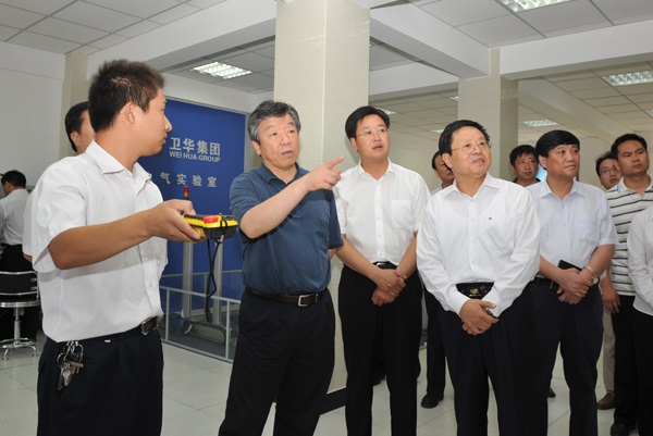 衛(wèi)華集團(tuán)董事長、總裁韓憲保陪同盧展工一行參觀了集團(tuán)技術(shù)檢驗(yàn)測試中心和和電器實(shí)驗(yàn)室。在電器實(shí)驗(yàn)室,盧展工饒有興趣地觀看了智能門式起重機(jī)、遠(yuǎn)程控制系統(tǒng)和帶載模型演示實(shí)驗(yàn),并詳細(xì)詢問了我集團(tuán)產(chǎn)品的技術(shù)水平、應(yīng)用領(lǐng)域和市場情況。盧展工說,起重機(jī)最核心的是自動(dòng)控制部分,你們的產(chǎn)品在國內(nèi)具有地域優(yōu)勢和價(jià)格優(yōu)勢,要把握好這些有利條件,繼續(xù)加強(qiáng)研發(fā),掌握核心技術(shù),才能有持續(xù)發(fā)展的動(dòng)力。