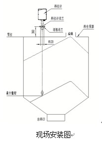 1、重錘料位計應(yīng)當安裝在偏離物料裝料入口的位置。料位計最佳安裝位置應(yīng)距裝料入口至少1.2米遠。距離容器側(cè)壁也應(yīng)盡可能遠,至少為1米。